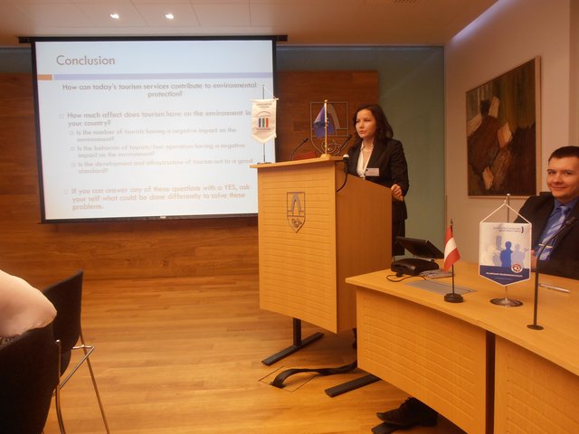 „Na II. Youth Parliament jsme se zaměřili na aktuální otázky týkající se životního prostředí a cestovního ruchu. První den zástupci každé země představili sebe, svoji školu a postoj své země k ochraně životního prostředí. Zvolili jsme si prezidenta a jeho dva zástupce a mohli začít. Druhý den nám slečna Harpa Maria Wenger, odbornice v oblasti cestovního ruchu, prostřednictvím perfektní prezentace přiblížila situaci na Islandu. Poté jsme byli rozděleni do národnostně smíšených skupin. V každé skupině jsme se snažili vymyslet co nejlepší návrhy na ochranu životního prostředí, které zástupce každé skupiny poslední den parlamentu odprezentoval ostatním členům. Po opravdu vášnivé diskusi jsme nakonec odhlasovali osm řešení problému dopravy, který je podle nás nejzásadnější. Tyto závěry budou zformulovány a odeslány vládám jednotlivých zemí jako návrh na zlepšení dané situace.