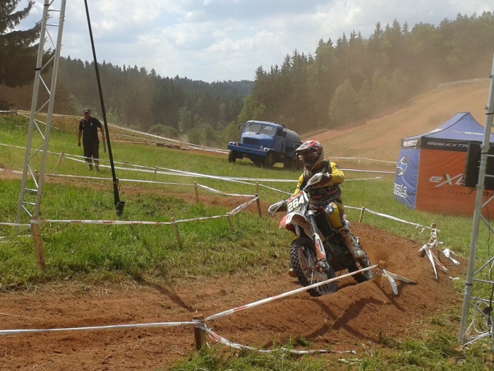 Organizátoři připravili pro závodníky výjezd lesem do příkrého kopce, plného nástrah v podobě čnících kořenů vzrostlých stromů, mezi nimiž uvízl nejeden jezdec. I zkušení dospělí závodníci uvítali pomoc diváků, aby se dostali zpět do sedel. Karel statečně překonal všechny překážky a na sluncem rozpálené trati si vykroužil svou letošní předposlední sadu bodů. Za vytrvalost si zasloužil 1. místo v součtu obou víkendových závodů ve své kategorii.