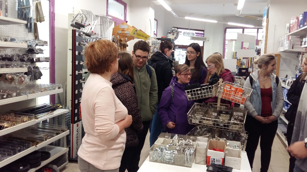 Studenti zde ocenili velmi milé přijetí prodavačkami. Následně je paní Fialová seznámila nejen se zázemím pro zaměstnance, ale také se skladovacími prostory. Samozřejmě jim přiblížila i práci prodavaček v jednotlivých odděleních prodejny. Obdivovali i popisky psané švihovou (aranžérské písmo), kterou nacvičují v odborné praxi. Paní Fialová byla k žákům velmi přátelská. Vyprávěla jim třeba příběhy, kdy zákazníci oceňují to, že se prodavačky v její prodejně opravdu vyznají, dovedou poradit a vysvětlit. Občas však přicházejí i zákazníci posilnění alkoholem, kteří hledají chyby tam, kde nejsou. Ale práce s lidmi prostě není jednoduchá. Kdo s lidmi pracuje, určitě ví, o čem je řeč.