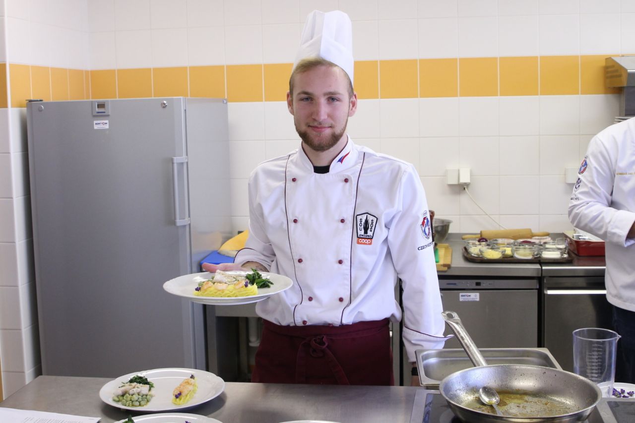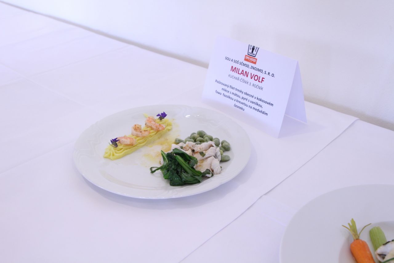 Kuchaři se museli popasovat s rybou. Dostali za úkol připravit čtyři porce moderního teplého pokrmu s použitím hlavní suroviny – chlazené tresky s kůží – v libovolné technologické úpravě s lehkou a těžkou přílohou. V této kategorii reprezentoval znojemskou střední školu na Přímětické Milan Volf ze třetího ročníku. Jeho pokrm nesl název „Pošírovaný filet tresky obecné v kokosovém mléce s mátou, pyré s vanilkou, fawa fazolkou a krevetou na medvědím česneku“. Konkurence však byla obrovská a Milan skončil na šestém místě.