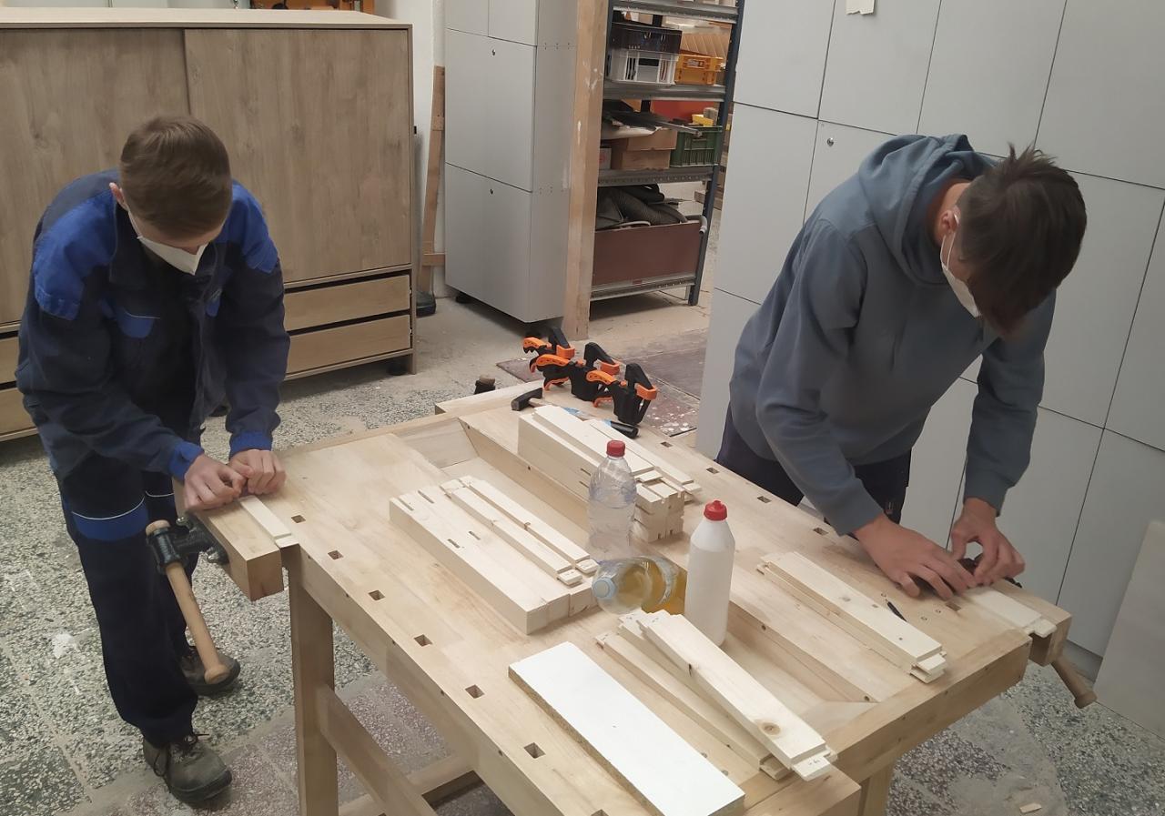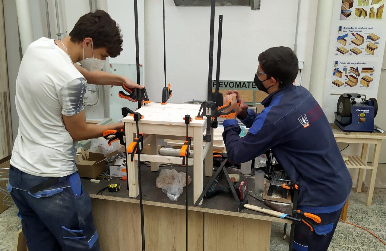 „Výrazně pokročili v rýsování, 3D vizualizacích, výpočtech kusovníků, celkově tak dokonale prohloubili svou prostorovou představivost. Okamžitě po vytouženém návratu na školní odborné pracoviště se žáci prvního ročníku vrhli do těch nejtěžších truhlářských spojů, kterým spojení na ozuby rozhodně je, a prokázali svou touhu dotáhnout manuální deficit způsobený právě covidovou pandemií, jež zasáhla všechny obory, truhláře nevyjímaje. Kromě šatních a vestavěných skříní, komod a dalšího nábytku vyrobili dokonce jeden z těch pracnějších a na přesnost požadovaných výrobků, a to stoličku na sezení kombinovanou s šachovnicovým stolečkem. Samozřejmostí bylo samostatné zpracování veškeré výrobní dokumentace, to ale přece ke kvalitnímu truhláři z Přímky patří,“ zhodnotil dovednosti svých svěřenců Pavel Dvořák, učitel odborných předmětů oboru Truhlář ze SOU a SOŠ SČMSD, Znojmo, s.r.o.