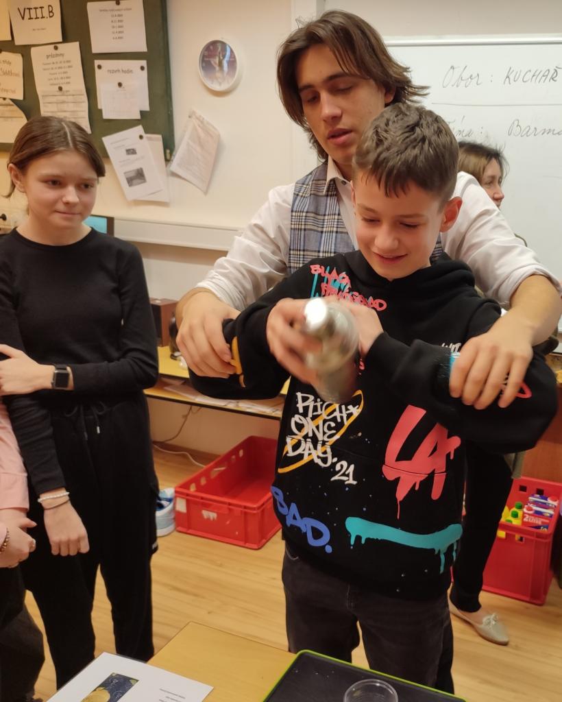 Petr, 8. D: Tato prezentace se mi zatím líbila nejvíc. Cokoli, co se dá sníst nebo vypít, je moje. A tyhle drinky mi chutnaly hodně. Byl jsem nadšený možností vyzkoušet si míchání drinků v praxi.
