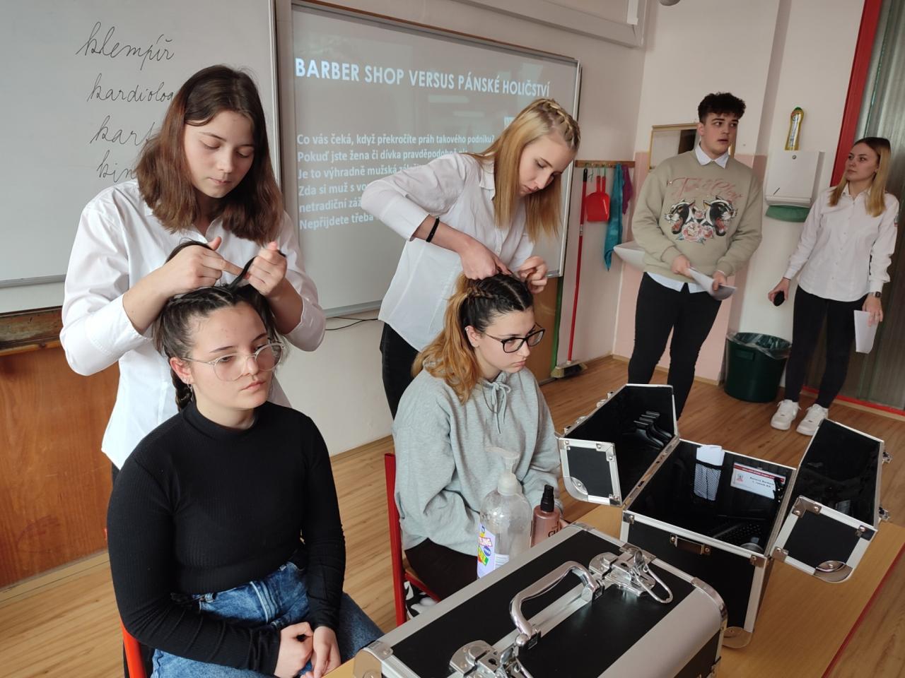 Katka, 8. D: obor Kadeřník se mi moc líbil, protože holky měly možnost nechat si udělat účesy. Zjistila jsem něco o typech barvení vlasů, a co obnáší být barber. A že kadeřník musí sledovat trendy celý svůj život. Ta soutěž na konci byla dobrá.